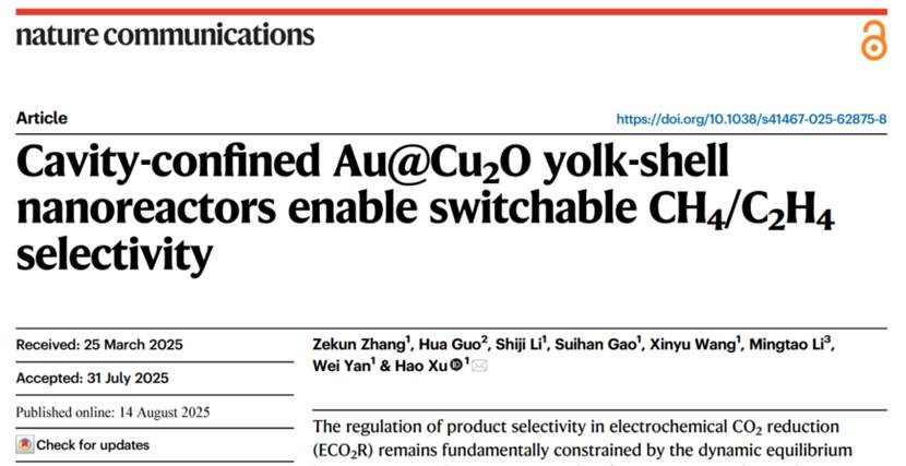 电催化还原二氧化碳(ECO2R)产物选择性调控受限于中间体传输与其表面覆盖度的动态平衡。近年来,空腔结构催化剂因其限域效应在调控反应微环境中展现出独特优势。通过物理约束关键中间体(如*CO),可定向改变反应动力学路径。尽管已有研究证实了空腔结构能够显著提高Cu基催化剂的产物选择性。然而,现有研究多聚焦于对特定产物选择性的优化,缺乏通过结构参数(如空腔尺寸和壳层厚度)动态调节*CO覆盖度以...