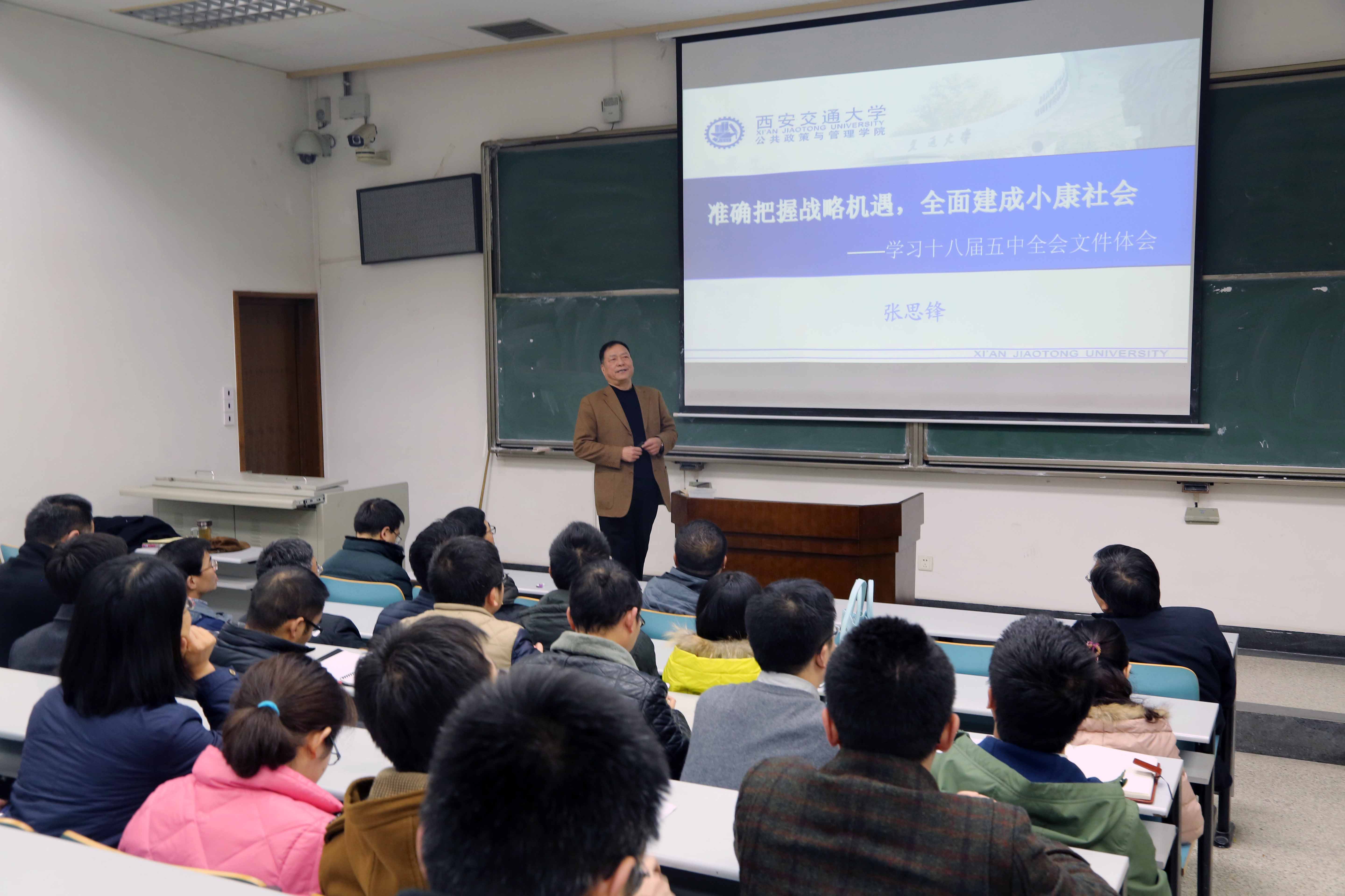 根据学校党委宣传部关于开展十八届五中全会精神宣讲工作的统一部署与要求,12月8日下午,成人漫画 分党委组织召开十八届五中全会精神宣讲会,邀请我校公共政策与管理学院张思锋教授为学院党政班子成员、分党委委员、各系(中心)主任、党支部班子成员及师生党员代表150余人作了题为“准确把握战略机遇,全面建成小康社会”的主题宣讲,大会由分党委书记王树众教授主持。