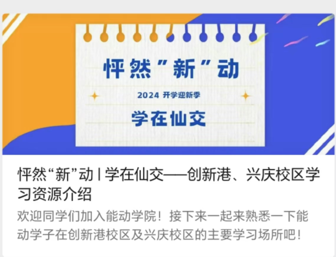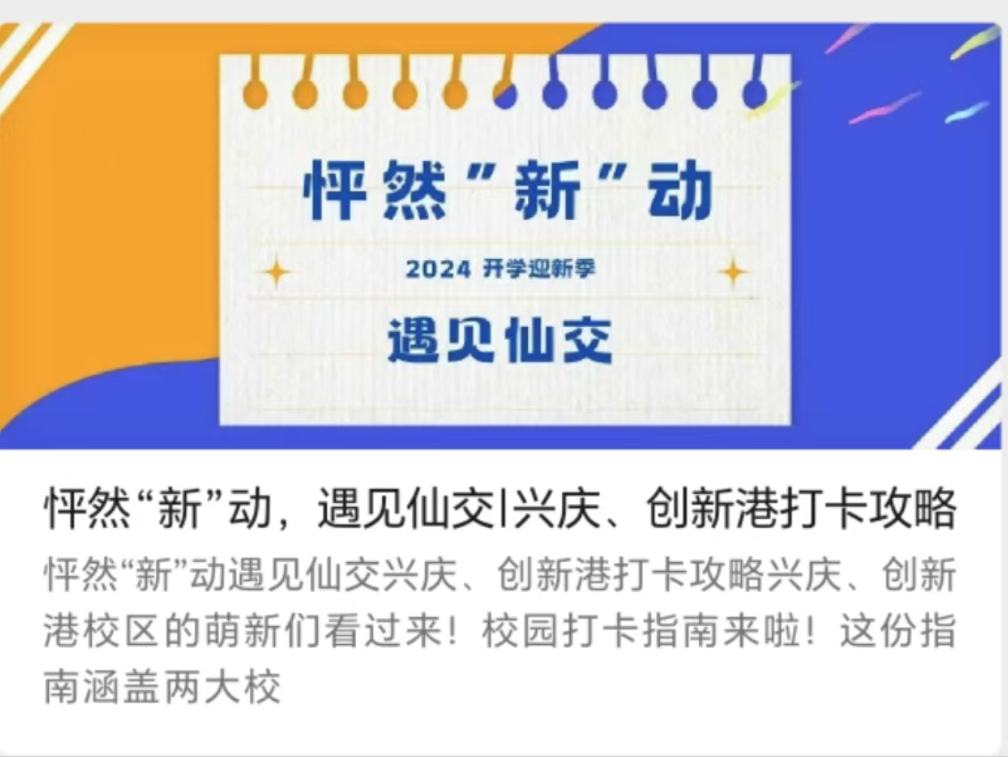 在线上,学院精心策划并推出了“怦然新动”系列专题推送,涵盖“遇见仙交”“食在仙交”“动在仙交”“行至仙交”等10余篇内容,细致入微地展现了校园生活的点滴,从衣食住行到学习娱乐,全方位引导新生提前融入校园生活。