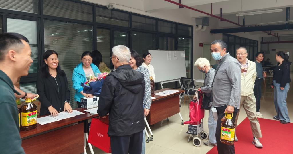 按照学院传统,与会领导为今年步入寿星行列(70、80、90岁)的离退休教职工代表送上了生日祝福并为所有离退休教职工发放了节日慰问品,祝福他们身体健康、万事顺意。