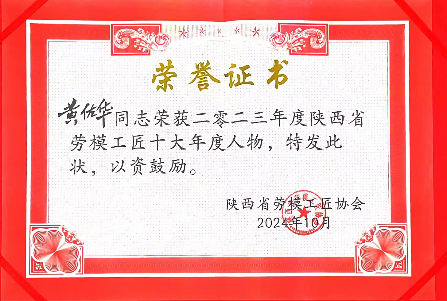 黄佐华教授荣获首届陕西省劳模工匠十大年度人物。