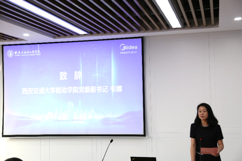 韦娜在致辞中介绍了学院在“产教融合、协同育人”方面的举措和取得的成果,她提到校企合作是提升人才培养质量、促进科技成果转化、推动经济社会发展的重要途径,希望能够通过本次比赛激发同学们的积极性、主动性和创造性,在未来各位同学可以以此为契机继续开拓创新,为实现中华民族伟大复兴的中国梦贡献青春智慧和力量。
