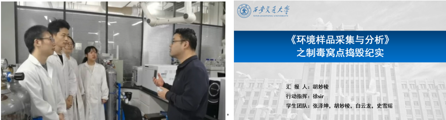 徐浩老师在指导《环境样品采集与分析》课程实践题《制毒窝点捣毁纪实》的同学们