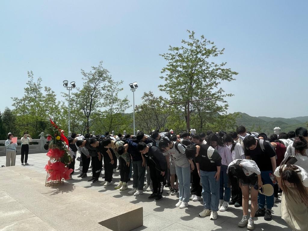 随后,同学们拾级而上,在纪念碑前肃立,瞻仰照金烈士纪念碑,敬献花篮,并深深地三鞠躬,革命奉献精神更加深刻地印入每一位同学的心中。
