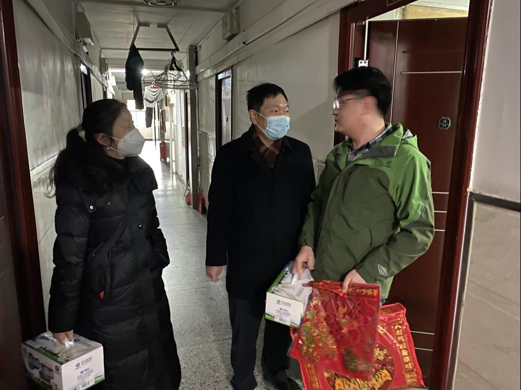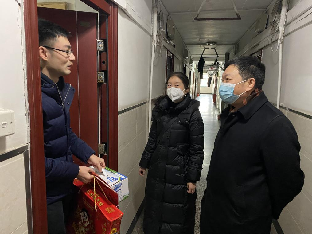 学生宿舍看望留校学生,并为留校同学们带来慰问品,对他们生活表示关心,充分了解学生留校期间的学习生活问题,为学生做好相关保障工作,使留校学生安心学习、安稳过年。