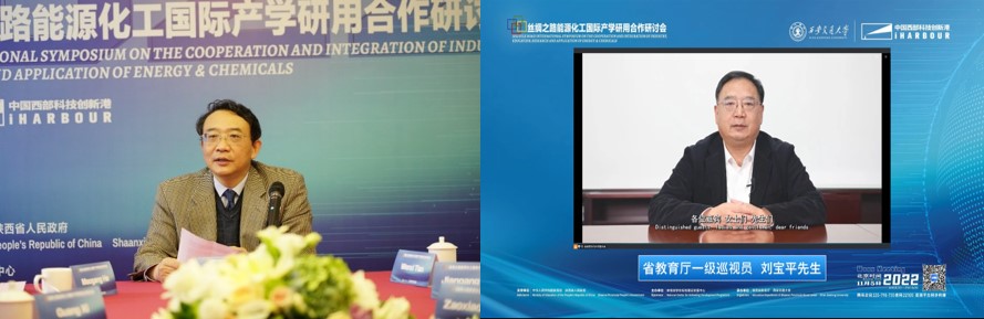 副校长席光致欢迎词,他介绍了西安交大在丝绸之路国际产学研用方面的系列成果,并表示面向全球碳中和愿景,西安交大将继续夯实能源化工领域国际交流合作基础,与国际同行一道为世界能源化工领域的科技发展及产业转型做出应有贡献。陕西省教育厅一级巡视员刘宝平代表陕西省教育工委、陕西省教育厅致开幕辞。刘宝平表示,面对人类文明和社会变革,产学研用融合发展势不可挡,陕西省一直积极参与和扩大“一带一路”教育国际合作交流,希望未来与各界共同努力创新推动人类共同发展。