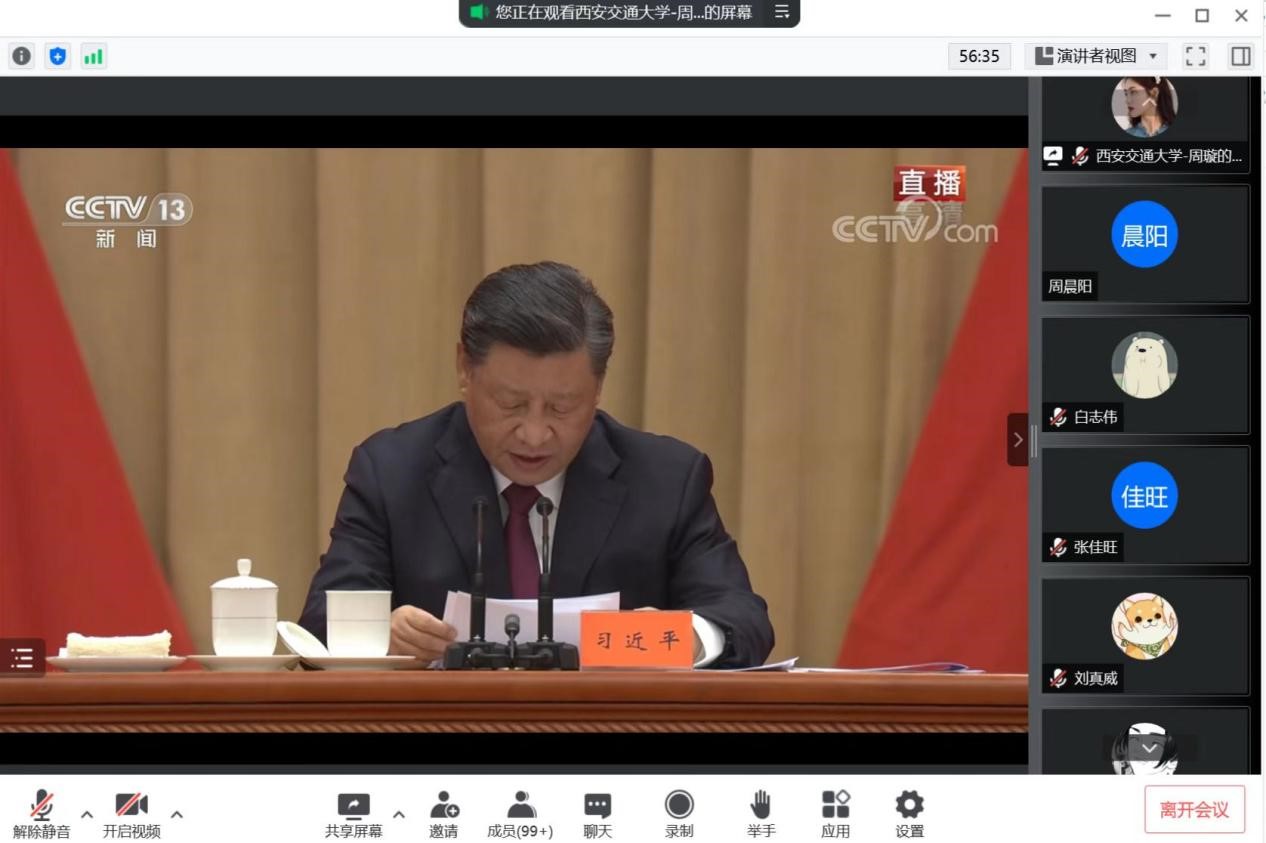 团工委组织青年代表集中观看庆祝大会直播并召开青年代表学习交流座谈会。团工委副书记雷驰,团工委副书记张鑫及各年级党团支部、研究生会、社团代表线下集中观看并座谈交流,学院其他青年学子通过腾讯会议线上参与。