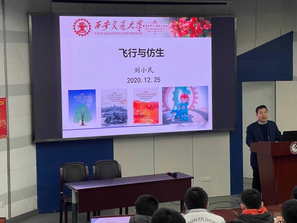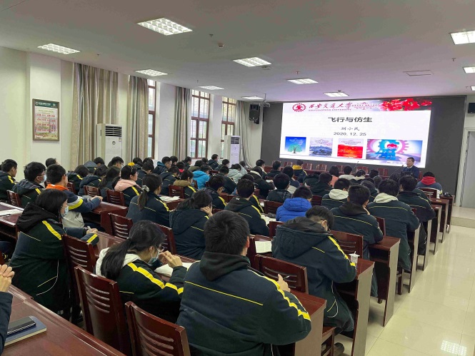 刘小民教授深入浅出地讲解了仿生的进展,由形的模仿到机理研究后的神似,进而推动材料学的发展让仿生学能更加广泛应用于生活中的方方面面,小到家用抽油烟机,大到大型民航客机的设计等等,得到了同学们的热烈反响。讲课之余,他从古城西安谈到成人漫画