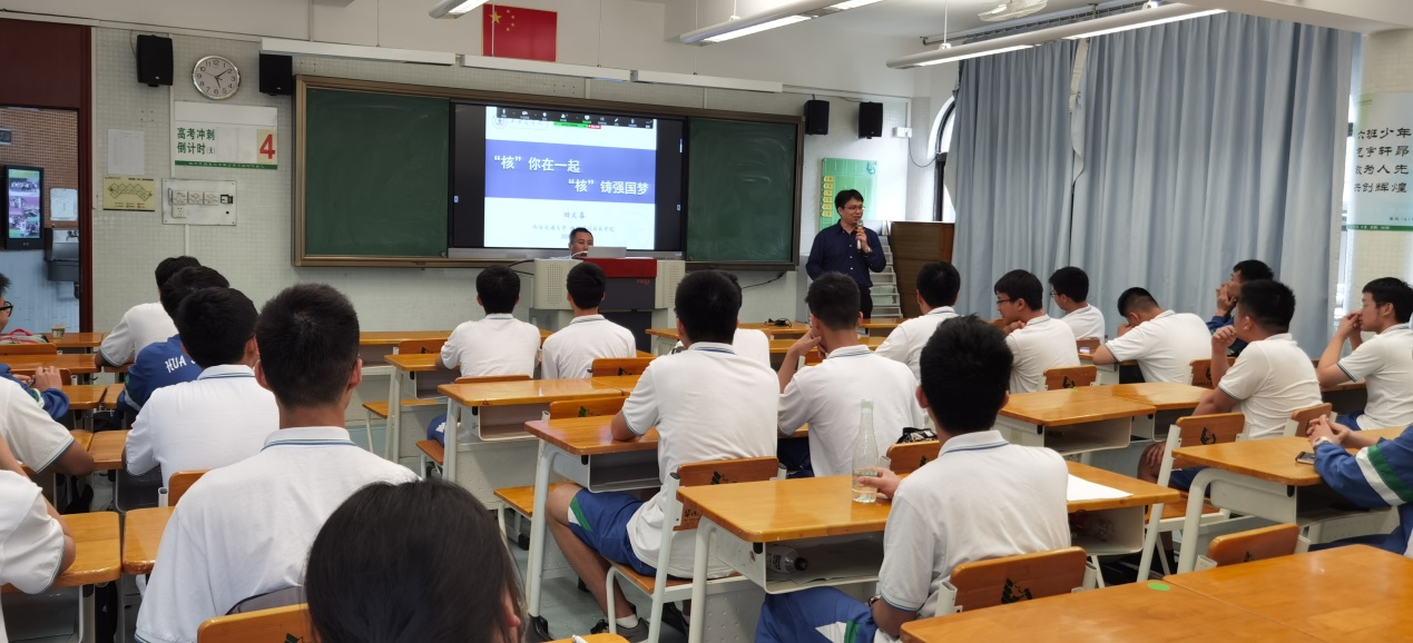 副院长、广东招生组组长田文喜先后给广东省广雅中学、广州五中、华南师大附中三所中学带来了《“核”你在一起,“核”铸强国梦》的科普报告。同时与顺德一中开展了合作座谈。