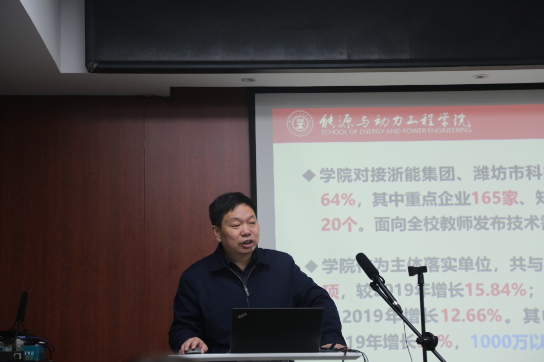 学院工会主席王海军向教职工做工会工作报告,学院工会在2020年组织了丰富多彩的教职工活动,提升了教职工精神文化生活质量,增强了学院的凝聚力和向心力,促进了教师综合素质发展。