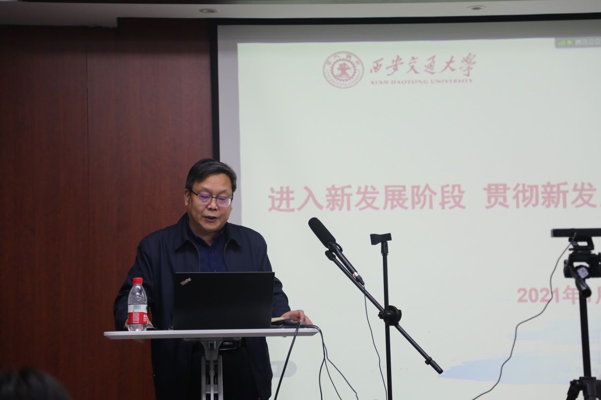 学院党委书记何茂刚传达学校寒假会议精神,带领大家一起学习了王树国校长“进入新发展阶段 贯彻新发展理念 构建新发展格局”的报告内容,解读了学校在各项工作中的业绩和思路,结合学院实际分析了学院各项工作的状况,明确了学院在发展中存在的不足和前进方向。何茂刚书记重点传达了卢建军书记的讲话精神,详细介绍了学校关于中国西部创新港发展的思路和采取的措施,号召全院师生团结一心,开拓进取,确保“十四五”开好局、以优异的成绩迎接建党100周年。