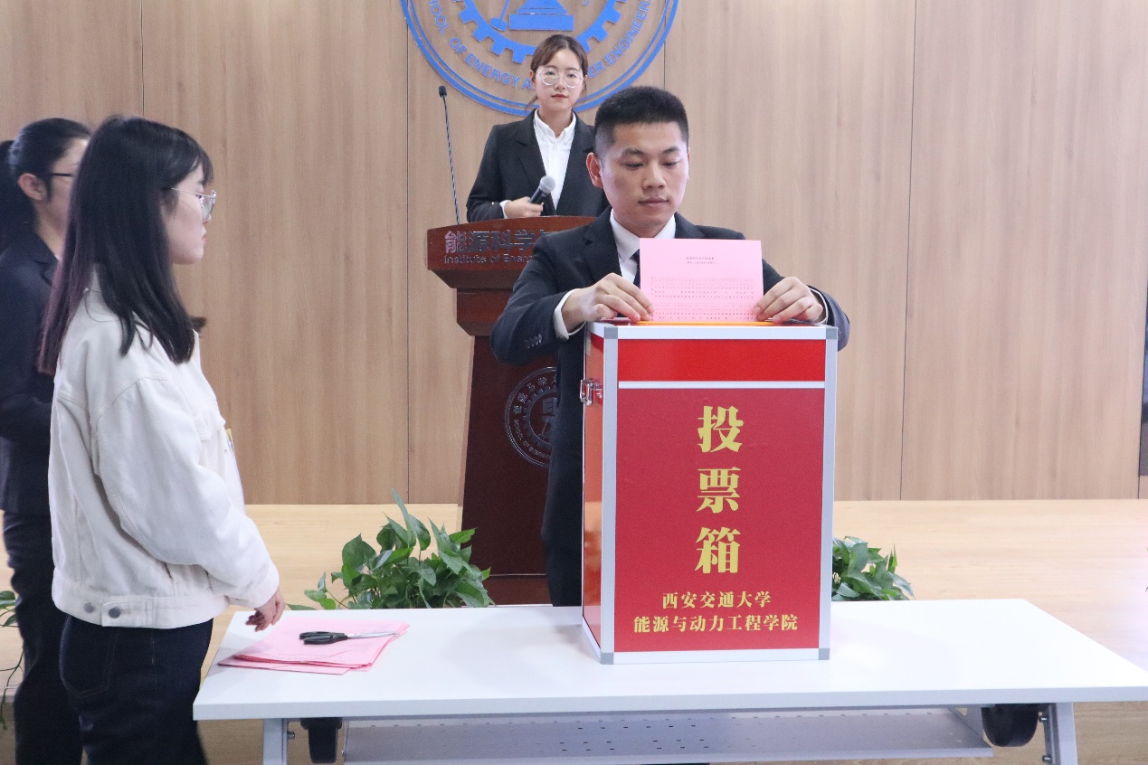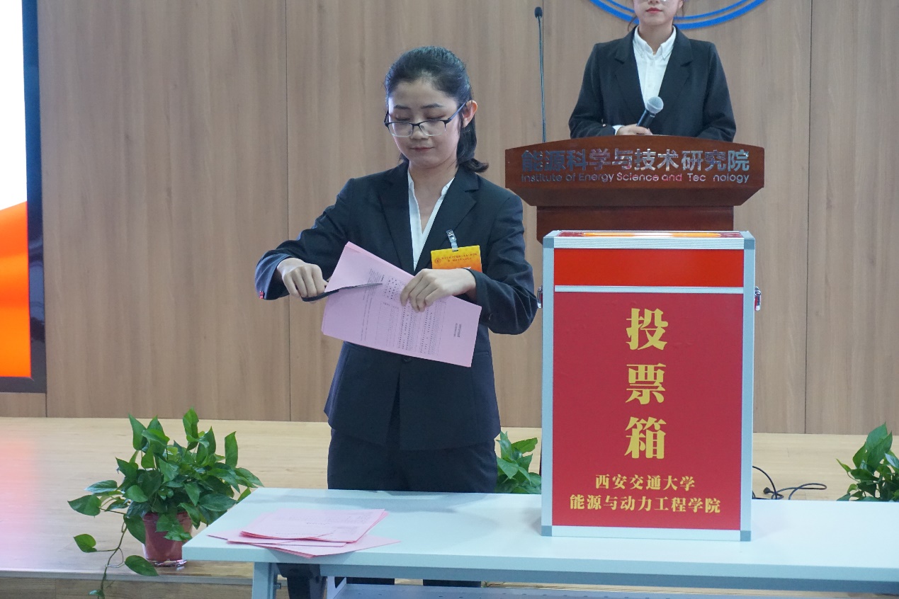 分党委副书记韦娜老师致辞。她对入选的研究生代表们表示祝贺,希望能动学子在以后的工作中能够不忘初心,全心全意为同学们服务,同时希望大家能够锐意创新、积极进取,完成新时期的挑战,为我校双一流建设献计献力,为建设社会主义现代化强国披荆斩棘,成为新时代实现中华民族伟大复兴征程中的弄潮儿。在庄严的校歌声中,大会落下帷幕。