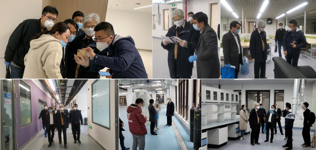 陶院士一行首先参观了学院已建成的相关科研平台和实验室,并对建设流程和相关建设需求处理进行了详细的询问,将可借鉴的优秀经验一一认真记录在随身携带的笔记本上。随后,陶院士逐一考察了拟建设场地,对场地现场状态、具体使用规划、水电气及环保需求、流程及安全保障、外置设备摆放、建设进度及困难等问题一一询问,对相关重要问题进行指导,对细节问题提出建议。陶院士表示:我们要积极响应学校加快创新港内涵建设的号召,按流程、高标准、严要求、安全稳步的推进平台建设。马上行动起来,尽早搬迁、尽早建设!