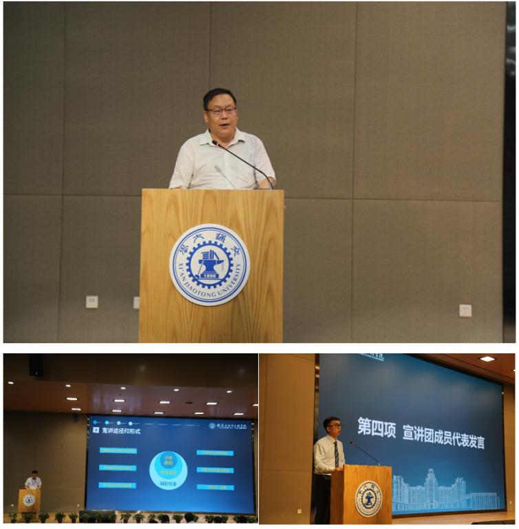 在百年办学历程中的文化内涵沉淀,强调思想政治教育与文化育人的重要性。并对澎湃宣讲团的工作提出要求,指出宣讲活动思想要正、内容要实、范围要广、形式要新,要结合交大及成人漫画