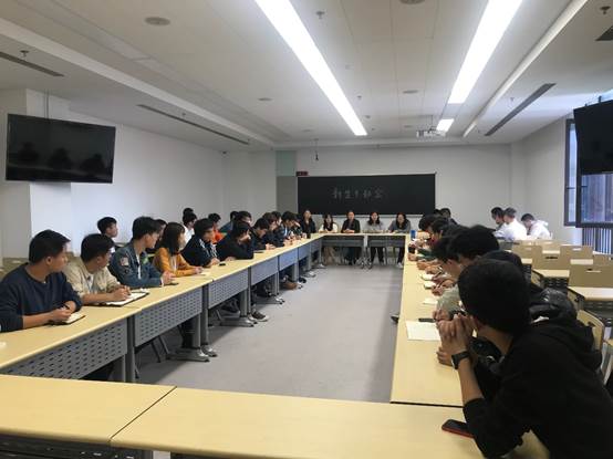组织召开2019级研究生新生党支部、团支部、班委会学生干部座谈会。学院分党委副书记韦娜,学院所有研究生辅导员,负责创新港研究生教务老师,以及2019级所有班级的党支部书记、团支部书记、班长参加了座谈会。
