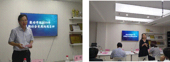 就业中心副主任祖建老师针对答辩情况进行点评,肯定了开展暑期社会实践的积极意义。学院分党委副书记韦娜老师发表讲话,对参加此次暑期社会实践的所有团队给予了肯定和鼓励,指出暑期社会实践活动作为第二课堂教育的重要意义,是引导青年学生了解社会需求,提高自身综合素质与能力、增强社会责任感的重要举措,是价值观构建与个性塑造与检验的良好方式,对大学生实现人生价值,认识人生意义大有裨益,能够推进其职业生涯的建构。同时,韦娜老师指出,要发挥好校企合作这个大平台,为更多的学生带来更多的实习机会,学院也会对今后的暑期实践活动给予大力支持帮助,与实践部相联合,把我们的暑期实践活动办的更加出彩!