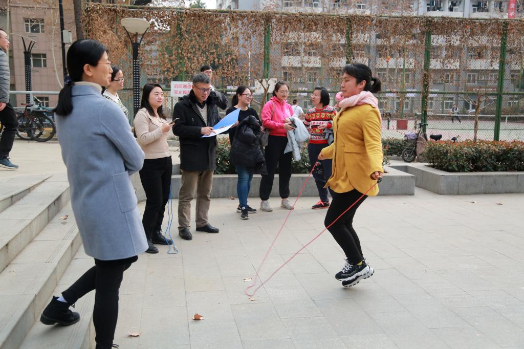 工会在北二楼前举办了一场别开生面的“三八”妇女节趣味运动会,比赛项目有吹乒乓入碗、一分钟跳绳、一分钟踢毽子比赛,每位女教工限报2个项目。