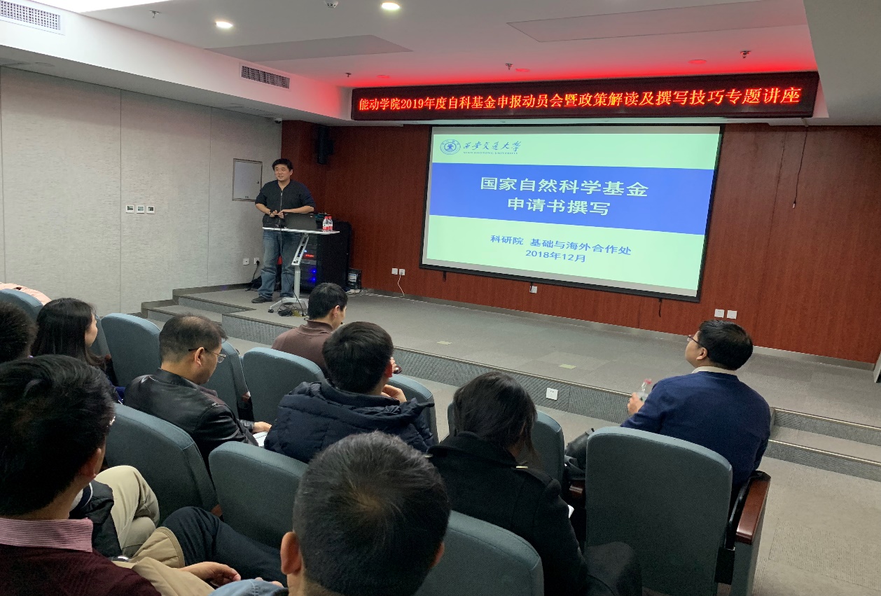 严俊杰院长主持讲座,邀请科研院基地与海外成果处处长刘永忠教授、自科基金申报负责人何会老师出席,全院教师百余人参会,座无虚席。