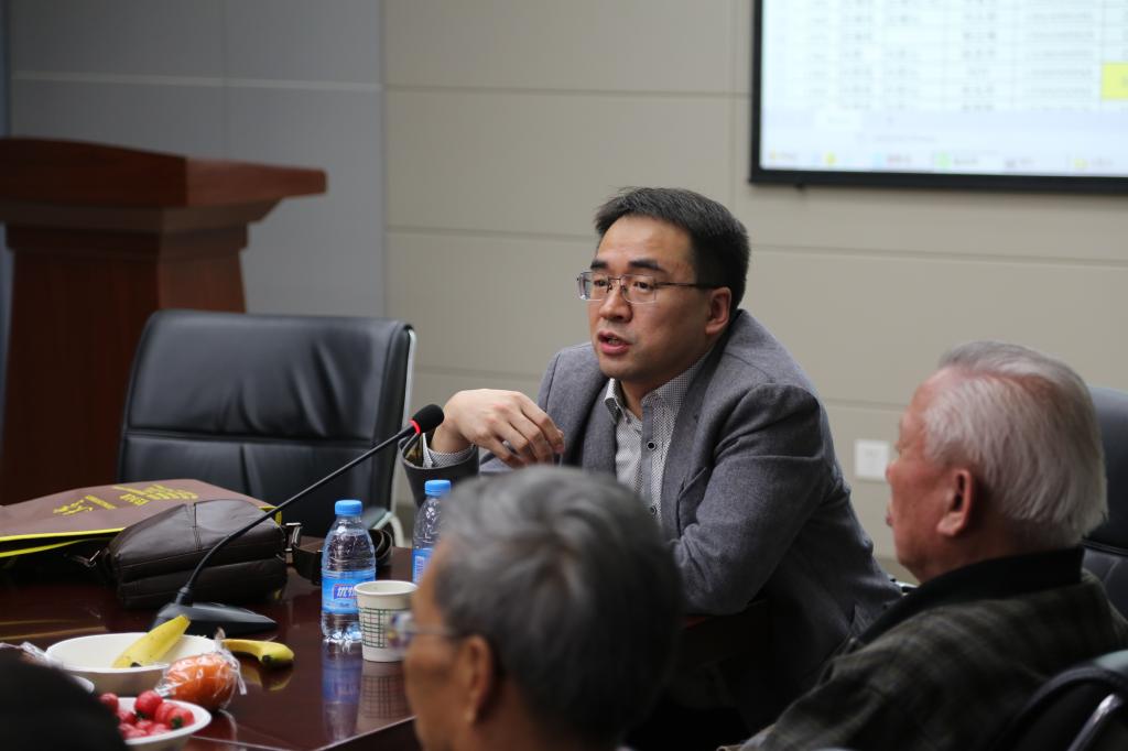 丰镇平院长向参加茶话会的二十余名离退休老教工表示热烈的欢迎和诚挚的祝福,并向老教工们汇报了学院近期关于学校双甲子校庆的相关系列工作,如成人漫画