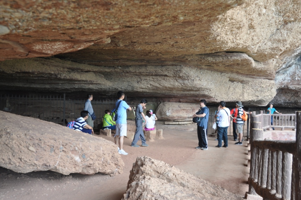 陕甘边革命根据地纪念馆参观结束后,一行人又来到了薛家寨革命遗址及丹霞地貌地质公园。经过了一个小时的攀爬,经过近70度倾角的石阶,爬升了400多米海拔。来到了当年红军战斗过的地方--薛家寨,这里有营地、会堂、军械库和军械厂,地势险要,一夫当关万夫莫开,成为红军的重要根据地之一。遥想当年红军、老一辈革命家利用天然岩洞建成游击队驻地,在如此艰苦的条件下开展武装斗争。正是有一种不畏艰险、不怕牺牲的革命精神支撑者他们。