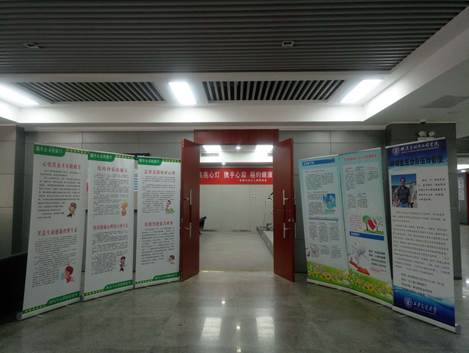 为了推进心理健康建设工作的常态化与便捷化,使得学生更为快捷地获取心理健康相关资讯,进而认知自身心理健康状态,学院在为学生发放心理咨询中心宣传材料的同时,亦制作了精美的心理主题宣传展板,放置于北二楼大厅,使得学生科随时获取相关资讯。