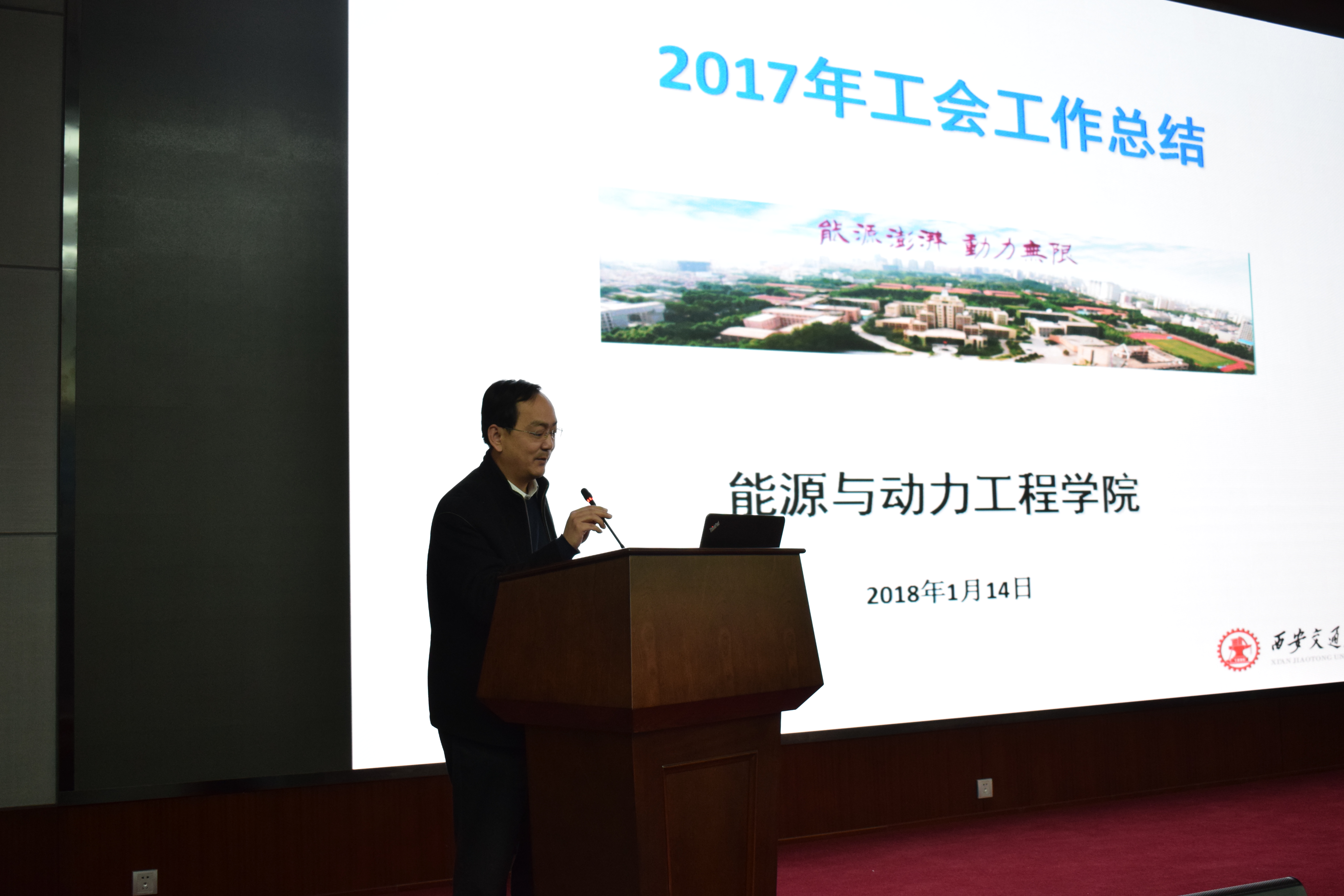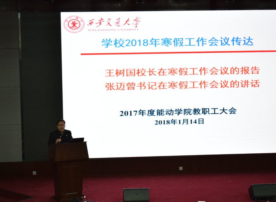 在科学馆101召开了2017年度全院教职工大会,总结2017年学院工作进展,传达学校寒假工作会议精神,并进行2018年工作任务部署。林宗虎院士、陶文铨院士及学院党政班子全体成员、各系/所/中心负责人和教职员工250余人参加了会议,会议由学院分党委副书记韦娜主持。
