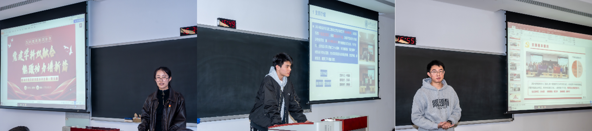 彭康书院本科生第一党支部书记赵梅宏、2024级低温与制冷硕士党支部书记牛炳尧、2024级热流科学与工程硕士第一党支部书记李文豪先后简单介绍了所在支部情况及建设实效。三方针对建设中“如何进一步发挥党员的先锋模范作用”、“如何将学科特色融入支部建设”等问题展开热烈讨论。通过开展交流、取长补短,三位支部书记打开新思路、找到新方法,并表示在以后的支部建设中要形成长效交流机制,以实际行动赋能学生党支部建设工作。