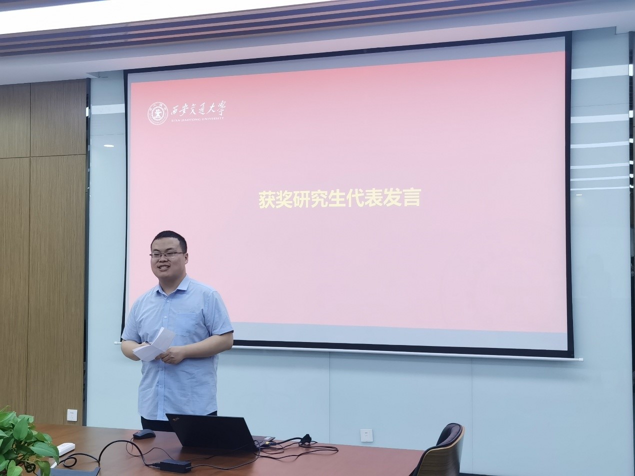 获奖学生代表赵林作了发言,他代表获奖学生向关心和支持我们学院发展的美的集团表达由衷的谢意,对辛勤培育我们的老师表示崇高的敬意。今后以更高的标准严格要求自己,将感恩作为对自己的激励和鞭策,以认真严谨的求学态度继续努力学习,坚持钻研和探索,取得更加优异的成绩,回报社会,成为为国家的建设和发展有用的人才。