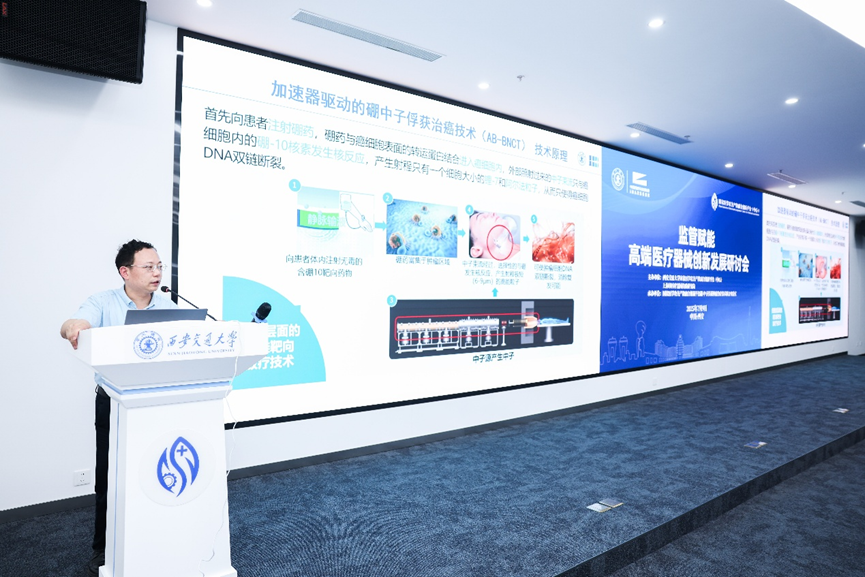 揭牌仪式上,别朝红常务副校长指出,上检院在医疗器械标准制定与安全评价领域具有权威地位,为高端医疗装备从研发到临床应用筑牢质量防线;西安交大依托中国西部科技创新港,正探索“1121”产学研深度融合新模式,推动科研成果转化落地。王盛教授团队深耕BNCT技术多年,承担国家“揭榜挂帅”任务,成功研发全国产化加速器驱动BNCT系统,填补国内技术空白。此次联合实验室的成立,标志着双方从“项目协同”迈向“体系共建”,将通过优势互补、资源共享,探索医工结合领域产教融合新路径,加速BNCT技术标准化、产业化进程,为肿瘤患者带来福音。