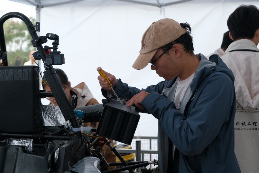 开赛第二、三天进行静态、动态车检。车检内容是衡量参赛车辆的重要标准,包括车轮外观、底盘、座舱空间、发动机等十多大项全面且入微的指标,任何一项没有通过检查,车辆均不能驶上赛道。面对换挡失效、卡钳故障和进气断裂等问题,毅行队员以高效率和专业素质分析解决问题,最终XR25B通过了数百道严格的车检。