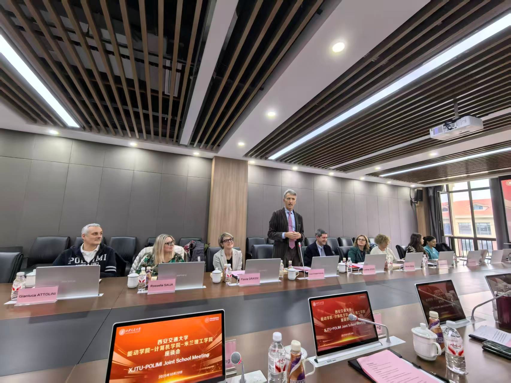 院长苏光辉代表学院致欢迎词,对米理工学院代表的到访表示热烈欢迎,强调两校在能源领域的合作基础与发展潜力,目前我们和米兰理工两校在核能科学与技术”双学位框架下,已有5名国际学生,其中4名同学在西安交大学习和科研,学业和科研表现优异,这一成功实践,正是双方高度重视并全力推进国际化办学的最佳例证。苏院长表示,希望我们在稳步推进硕士层次合作的基础上,将成功经验全面拓展至本科生层面的中外合作办学。米理工学院Sergio Amedeo PIGNARI教授回应致辞,高度认可西安交大的学科实力,期待通过此次交流推动双方合作迈向新高度。