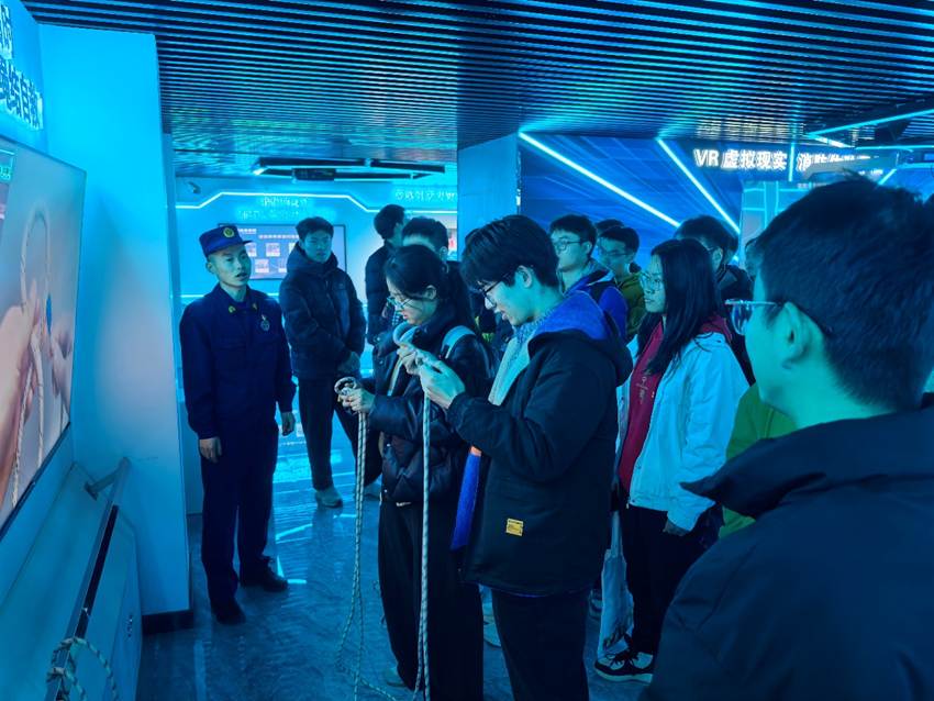 随后,大家移步至创新港消防科普展馆,开启了一场系统的安全研学之旅。馆内通过图文展板、实物陈列与互动装置,生动展示了消防事业的发展历程及现代火灾防控体系。大家在馆内体验了火灾隐患排查、模拟报警演练等实操项目。创新港消防救援站通过VR设备还原真实的火灾场景,帮助大家系统掌握了从初期火灾扑救到紧急疏散逃生的全链条知识,有效填补了书本理论与实际避险之间的空白。