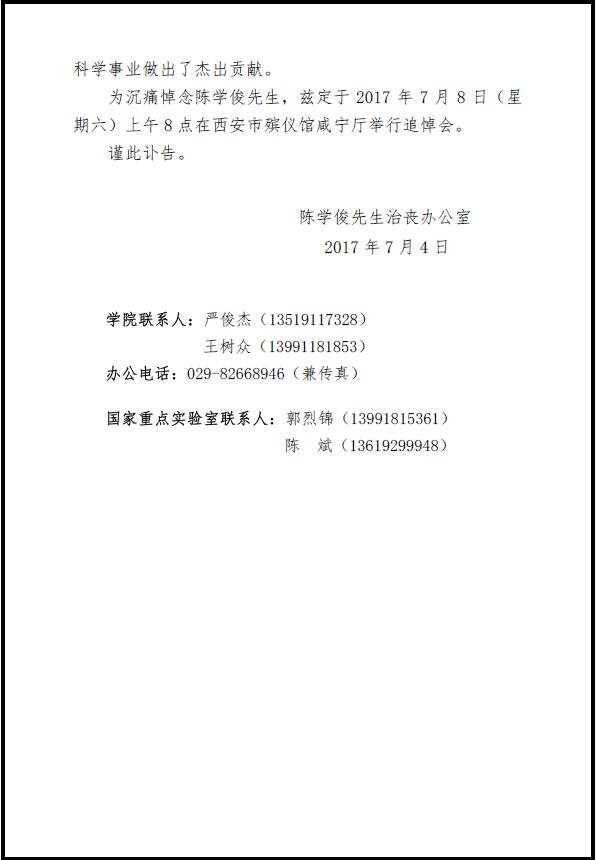 陈学俊是我国热能工程学科的创始人之一、多相流热物理学科的先行者和奠基人。先生于上世纪50年代初筹建了我国高校中第一个锅炉专业,开出了锅炉专业的全部课程;1979年创建了我国高校第一个工程热物理研究所;创建了我国唯一的动力工程多相流国家重点实验室,是国内外享有盛誉的能源动力工程专家和教育家,为我国能源动力工程科学事业做出了杰出贡献。