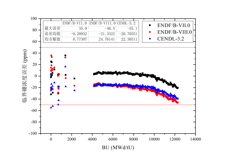 图2 华龙一号第二循环临界硼浓度与测量结果误差