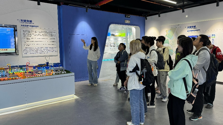 下午15:30,同学们参观了位于创新港1号巨构的国家储能平台实验教学中心、热质储能研究室和氢储能研究室的部分实训平台。在实训平台中,同学们们近距离接触到尖端的科技设备,并与科研人员深入交流,了解和学习国家储能平台承担的国家战略使命和储能领域的科学攻关任务。近距离了解了学校所承担的国家科技前沿领域的研究任务与发展情况,使同学们更直观地感受到学校在储能领域的技术实力和发展潜力。