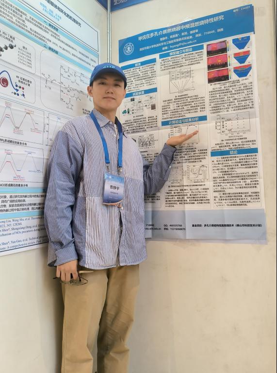 之时,曹静宇就将学习与科研作为自己的首要任务,学习新思想,争做新青年,刻苦钻研专业课知识,精进实验技能与研究方法。工位、实验室、健身房,每天三点一线的行程,是他保持健康体魄和饱满学习状态的关键。硕士一年级的时候,课程多难度大,他经常课间不休息,将学习中的疑难点与老师讨论,交流学习心得。在完成学业任务之余他还投身到课题组的课题与项目中,掌握各方向的实验方法,帮助师兄师姐分析数据,总结成果。在疫情封校期间,他基于多孔介质低氮燃烧技术的研究,一口气申请了4项发明专利,其中获授权3项;此外,还获得了学业奖学金特等奖、优秀研究生的荣誉;在学术交流中,他参与2023年工程热物理燃烧学年会,与同行交流学习,并发表会议论文1篇;投稿SCI论文一篇。
