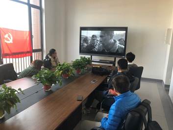 会议最后一项,在观看完电影部分片段后,为了增强支部成员的党性修养,党支部全体成员对着党旗重温入党誓词。重温入党誓词,感召党员努力实践,自觉奉献,不断进取,奋斗终生。