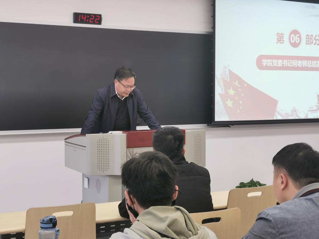 党委书记何茂刚老师总结发言。何书记指出我国距离实现科技现代化还有很长的路要走,但过去的40年发展飞速,很难预料5年之后的世界如何,所以我们能做的是把握当下,把现在的事情做好。何书记介绍了学院“十四五”规划的部分内容,并说明“十四五”规划的落实离不开广大师生的努力,鼓励大家积极进取,做好科研。最后,何书记对我们提出了一些要求:作为当代研究生,要对国际、国内社会有正确的认识,不能人云亦云;要认识到集体的力量,团队协作很重要;要学会发现科研、生活和未来的问题,并积极想办法去解决问题。