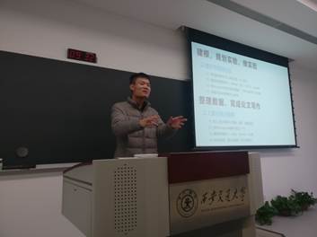 会议第一项,由王其为全体参会成员做学习科研经验分享。王其将科研比作“拍电影”,把每一个步骤与拍电影的过程结合起来,详细讲解如何功课科研难题、突破科研瓶颈,通过讲述自己科研中的做法和经验,让参会同学对于科研有更深的认识。