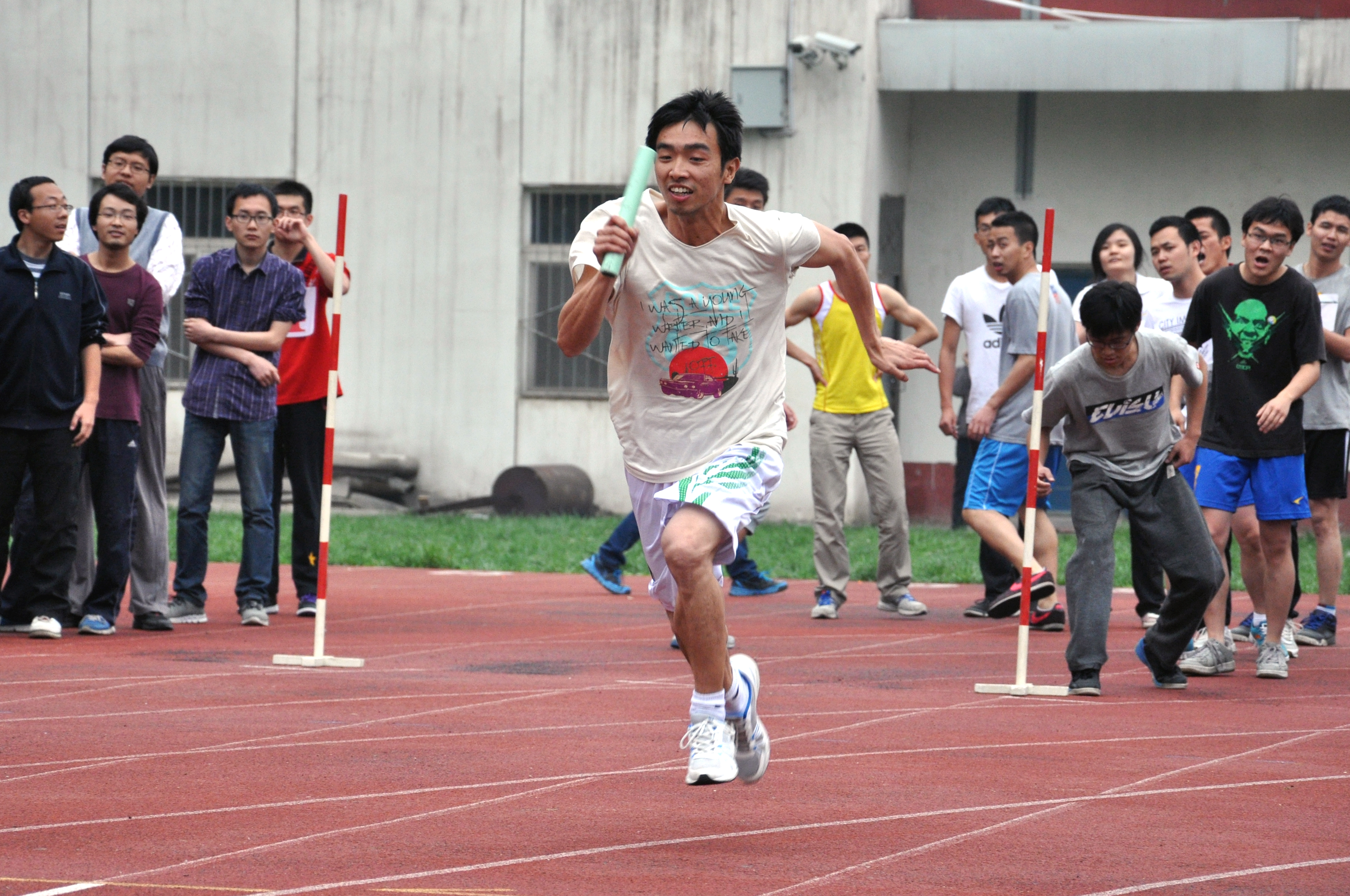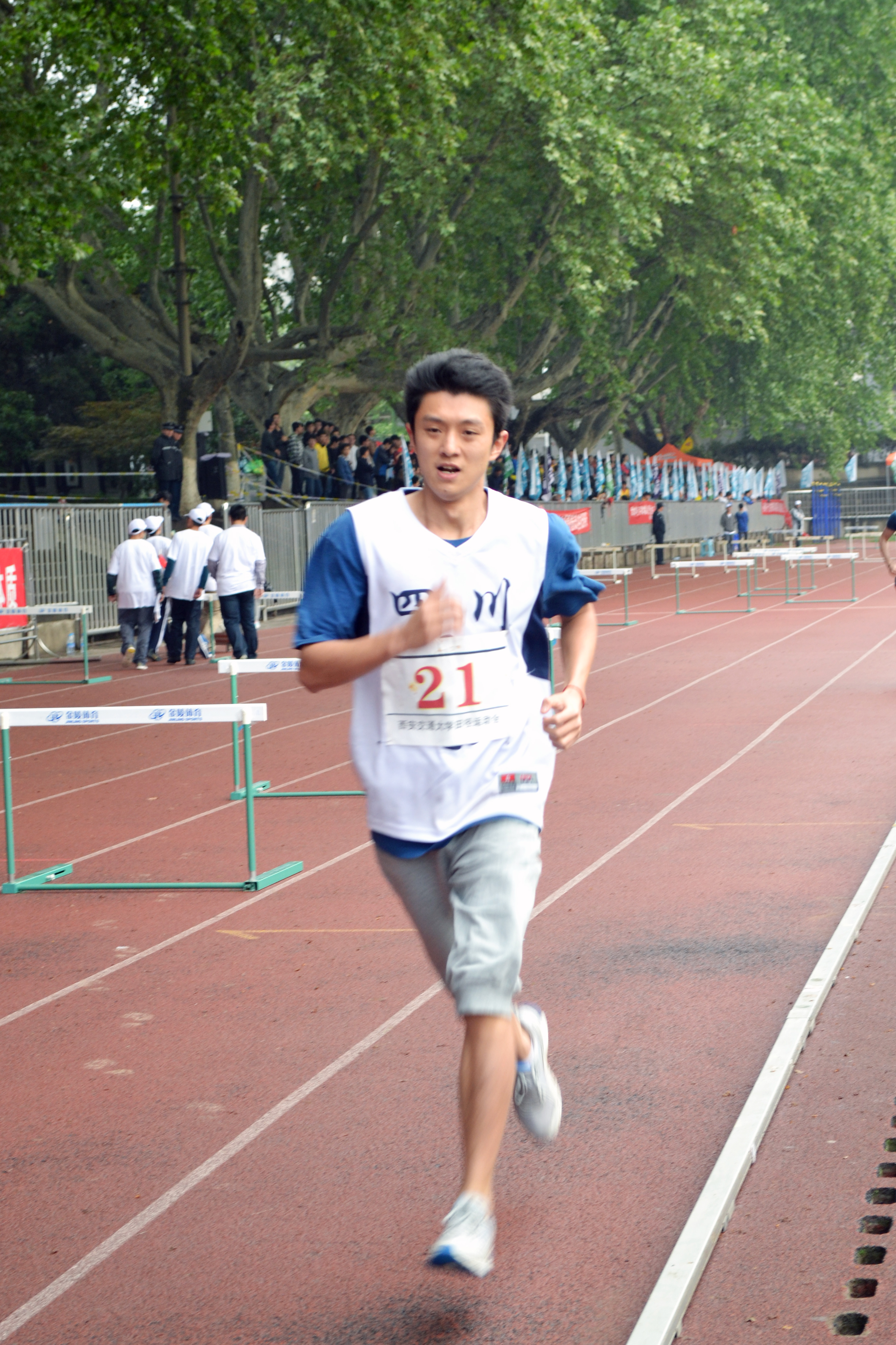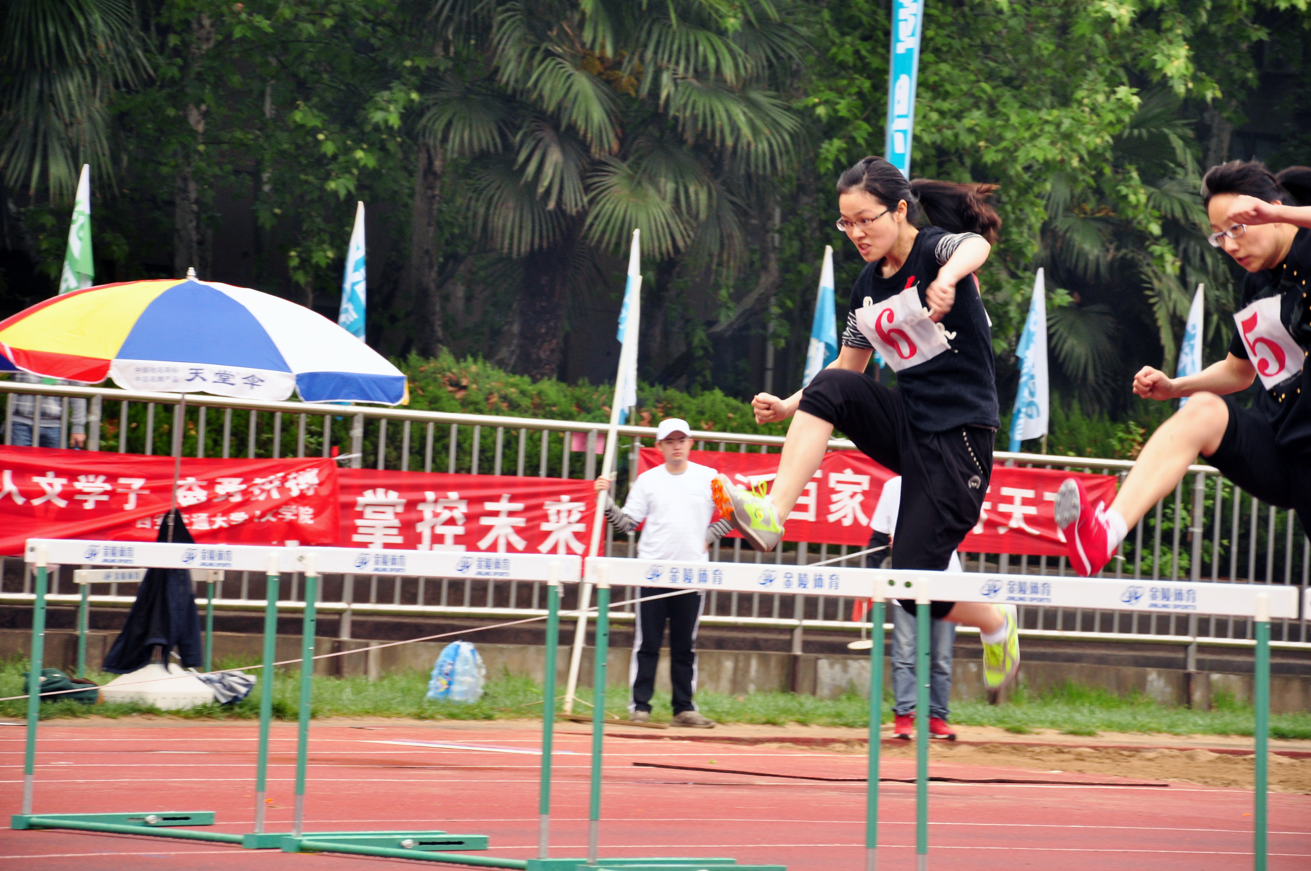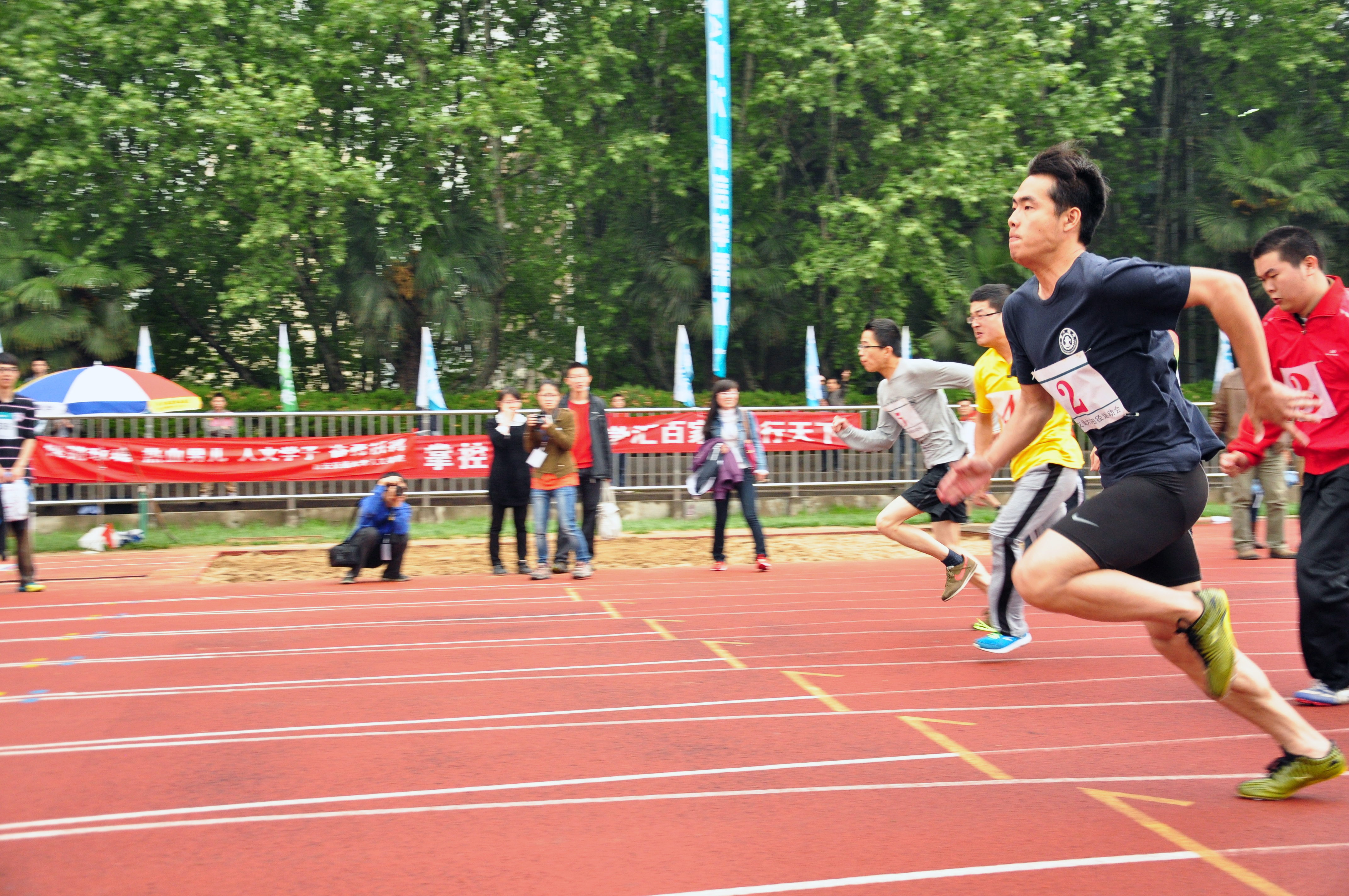 一鸣惊人付加鹏——已经读博士的付加鹏平时酷爱篮球,不过还未曾尝试过在运动会上一展风采。在本届校运会上,上届冠军刘翔负伤不能参赛,着实令运动会筹备组为男子跨栏项目头疼不已。男子跨栏项目中的跨栏足有1.067米高,一般人别说跑着跨过去,就是走着跨过去也很困难。在项目急缺参赛队员的情况下,付加鹏为了解筹备组燃眉之急,还没有在运动会上尝试过跨栏项目的他自告奋勇报了该项目。当赛场裁判枪响后,付加鹏犹如离弦之箭般冲离起跑线,在跨越数个1.067米高的障碍物后,顺利夺得男子跨栏亚军!在谈到参赛感受,付加鹏笑道“这次我们教研室冠亚季军都全了,教研室平时的运动氛围就很好,会经常和大家一起打球跑步。锻炼身体还是很重要的,接下来会继续坚持,有机会一定会更多参与比赛,为学院争光,对自己也是一种激励和督促”。