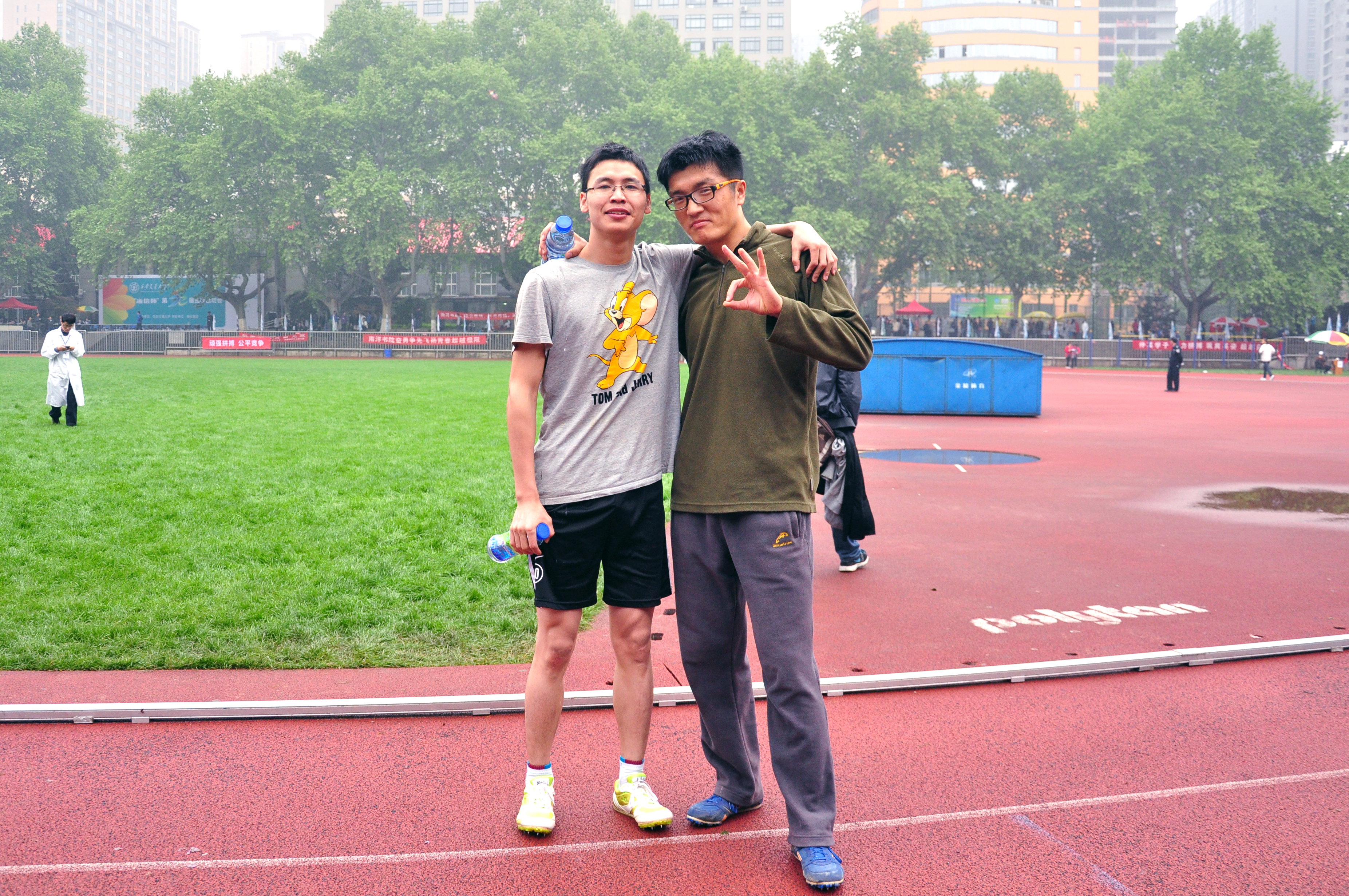 在运动会的这三天里,当夜色还没有完全散去,当天空还在飘着淅淅沥沥的雨,当整个田径场还是一片沉寂,体育部的小伙伴们已经早早地赶到了大本营,开始做着比赛前的准备工作。在比赛过程中,体育部成员,协同研会其他成员和志愿者,将服务运动员的工作细化到每个项目,从联系、签到、检录、照相、采访,到送水、提衣服……他们认真对待每个细节,竭尽全力为运动员服务,力争把一切工作做到最好。永远有那么一群能动人,他们穿梭在整个运动会赛场、成人漫画