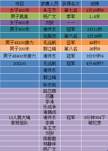 硕3014班同学参加运动会成绩表