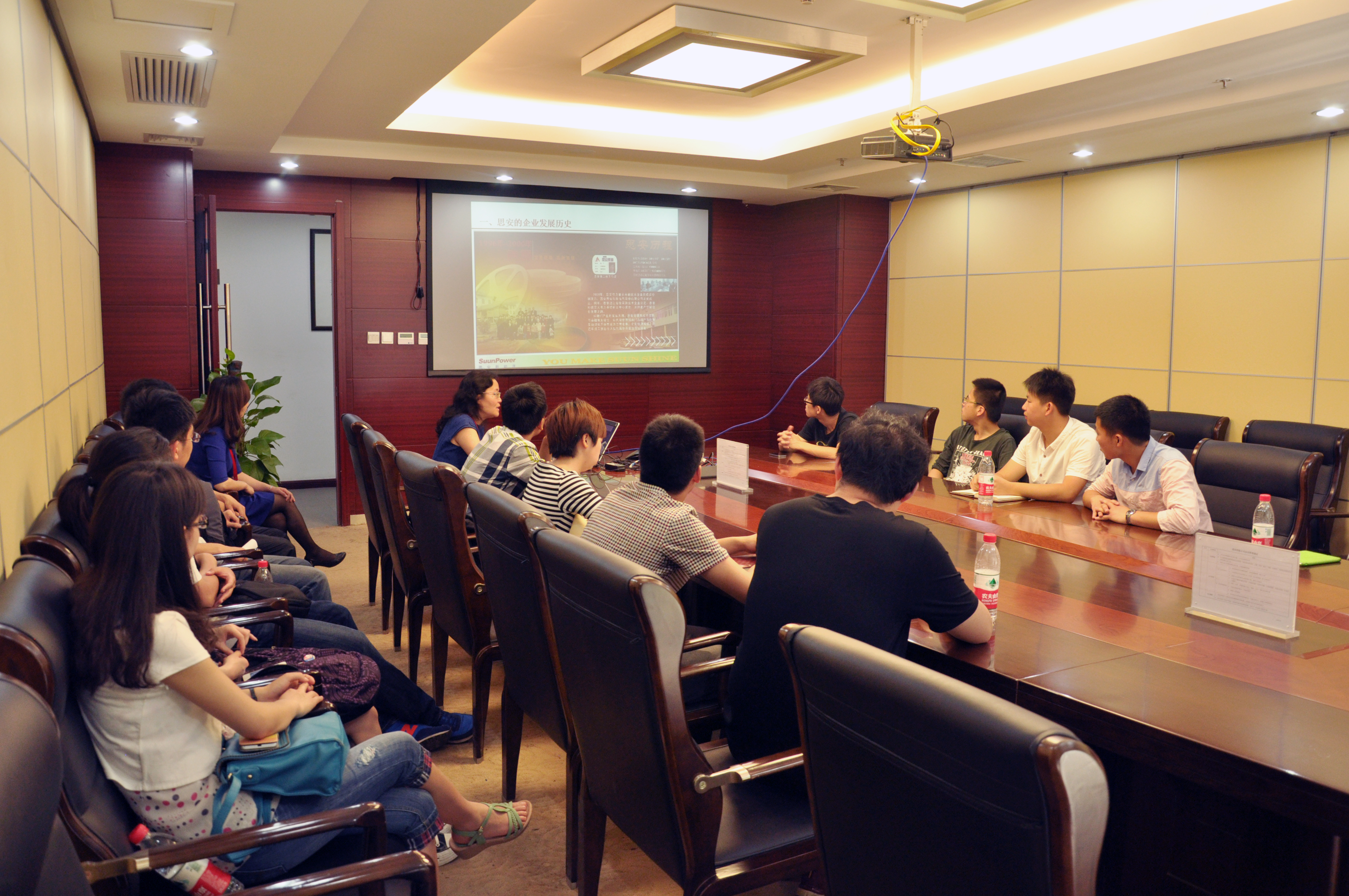 萌芽、生根、成长、发展、壮大的多元化、高科技集团公司”。从80年代末公司做小型控制系统到90年代的产业代理,再在新世纪初转型做自动化系统集成,公司一直是稳步前进,2006年公司市场目光敏锐,抓住行业机遇,开始从事工业余热余压的发电和节能减排,直到2008年思安新能源正式成立。在邵总专业的讲解下,同学们都感叹前辈创业的艰辛,并看到了企业广阔的发展前景。接下来,她接着为同学们介绍了企业的组织结构和产业结构,详细阐述了思安新能源的成人漫画。她提到一个企业的文化是决定企业不断发展的根本动力,“凝聚智慧,追求卓越”是他们一贯秉持的企业理念。最后,邵总就研究生今后面临的求职问题也给出了自己的建议,一定要充分利用技术资源和市场资源,把握好每一次机遇。