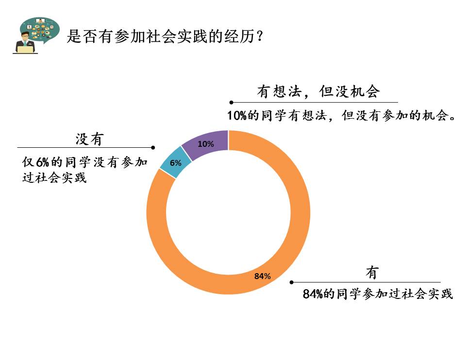 研究生新生人群中参加过社会实践的比例较高,说明人群关注度高,同学们在本科或高中阶段大多参与或至少了解过社会实践。具有帮助他人服务社会的意识和想法。