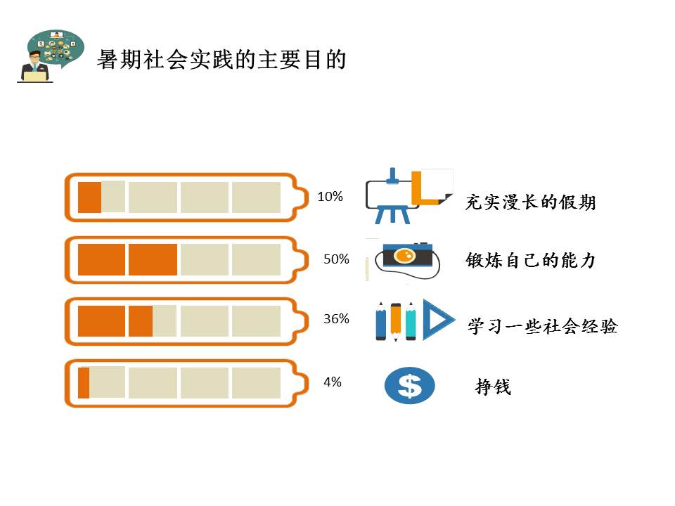 同学们暑期社会实践的主要目的是锻炼自己的能力和学习一些社会经验,充分利用假期时间借社会实践的机会,接触社会生活,体察不同领域生活常识,给自己积累经验,为自己未来的求职升学增砖添瓦。也有少部分同学认真规划或是打工挣钱,总体来说假期时间绝不浪费。