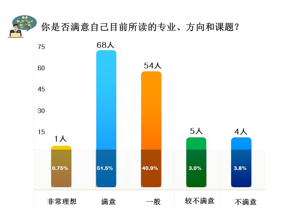 大多数同学都对自己的专业表示比较好的认可,93%的同学都没有对自己专业不满意.
