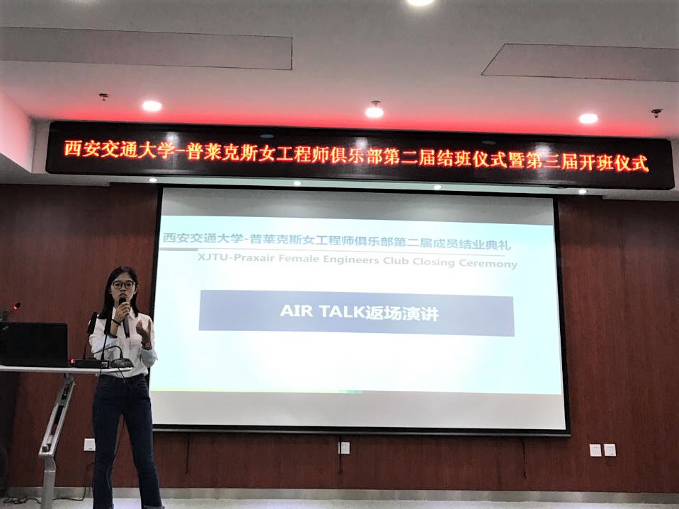 普莱克斯女工程师俱乐部第二届主席团成员李娇作为代表汇报了学员们一年来的培训课程,过去一个学年俱乐部共举办包括创新工作坊、暑期社会实践、心里沙龙、AIR TALK演讲比赛等12个高品质活动,并通过视频展示了第二期学员的成长感悟,回顾了包含俱乐部成员辛勤付出的精彩瞬间,展示了37位学员活动风采。
