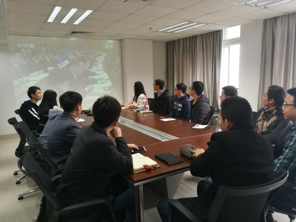 会议开始,全体成员集体观看十三届全国人大一次会议开幕会直播,聆听李克强总理作政府工作报告并交流讨论。