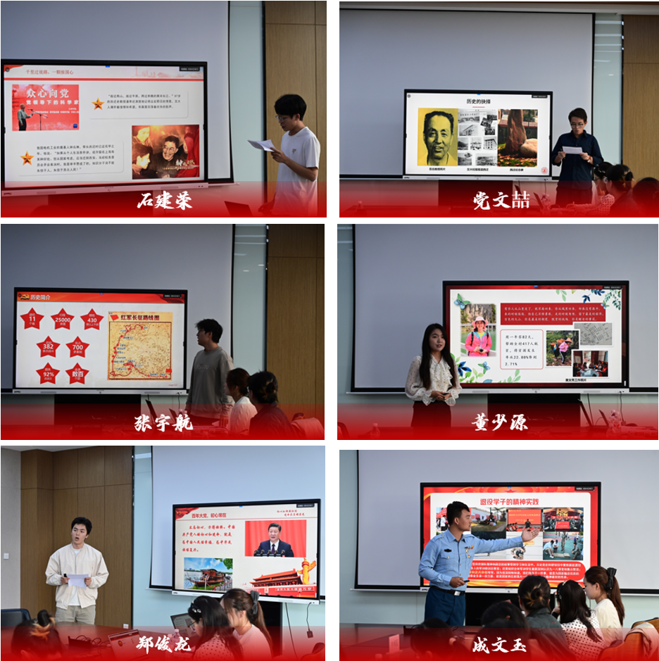 石建荣以西迁精神为炬,照见老一辈扎根西部、青年一代接力奔跑于科研前沿、基层大地、世界舞台的家国长卷。党文喆循脉交大西迁史诗,摹绘苏庄教授“国家需要处即故乡”的抉择、邓稼先铸剑山河的精神航标,激励青年赓续红色基因,在强国赛道上跑出加速度。张宇航以长征精神为炬,贯通扶贫长征、科技长征,再现跨越时空的奋进史诗。董少源深情讲述黄文秀扎根脱贫攻坚一线的奉献故事,让这位时代楷模以生命写就的使命答卷,化作百年党史为民初心的炽烈注脚,更点燃乡村振兴的接续火炬。郑俊龙以初心为镜,映照百年党史与交大西迁共振,呼吁青年执使命火炬,照征程苍穹。成文玉以退役士兵与交大学子双重身份,携笔从戎再归讲堂,将部队铁血与西迁精神淬炼成能源报国的信仰火炬,在强军与学术双战场同频燃烧百年党史初心。