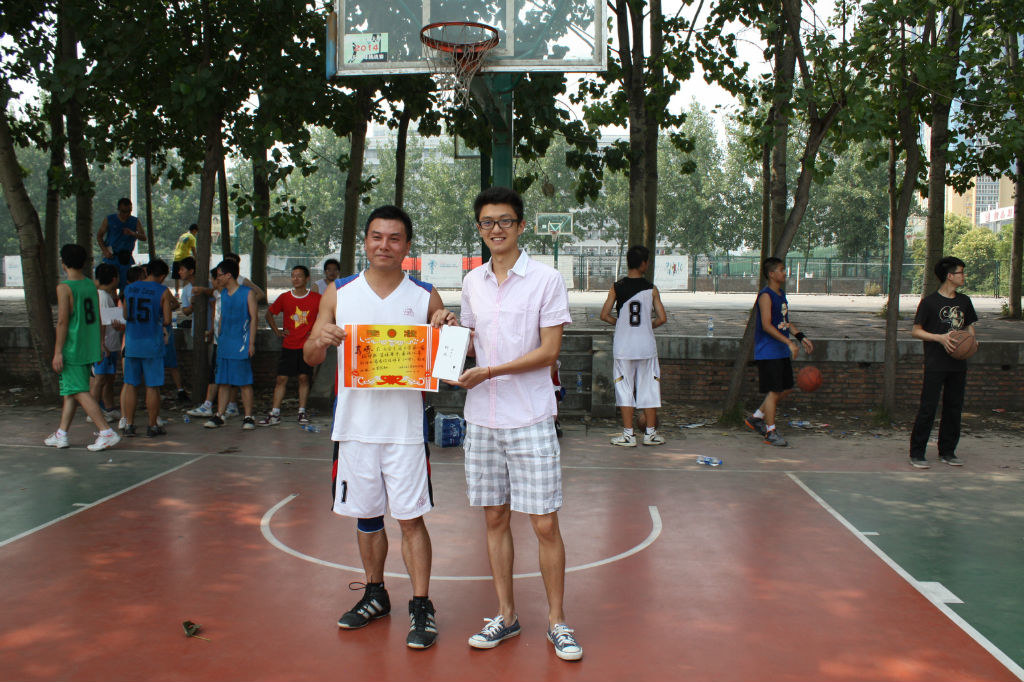 经过两周的休整,6月21日上午进行了篮球决赛阶段的竞逐,明媚爽朗的天气也为比赛助兴,由于在中场休息时间增加了女生投篮环节,决赛场上也吸引了不少锅炉专业的女球迷。周屈兰老师率领的锅炉A1队和锅炉B1队展开了激烈的较量,最终A1队战胜B1队(比分为56:36),获得比赛的冠军。另一场地A2和B2进行了一场精彩的比赛,上半场B2队通过精准的投篮一度将比分领先至18分,易边再战,A2队在第三节打出了绝妙的配合,一度将分差缩小至1分,关键的第四节,B2队稳住阵脚,控制节奏,始终保持领先优势,最终由王帅完成了一次快攻将比分领先至3分,而A2队压哨三分未进,最终B2队有惊无险地战胜了A2队,取得第三名。比赛结束后,李炼被评为本届篮球赛的MVP(最有价值球员),周屈兰老师为获奖的队伍和队员颁发了证书和奖品。